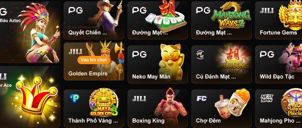 Sảnh PG (PG Soft) là một trong những nhà cung cấp game slot nổi tiếng nhất thế giới, có mặt tại VNZ66 với hàng trăm trò chơi nổ hũ siêu hot như: